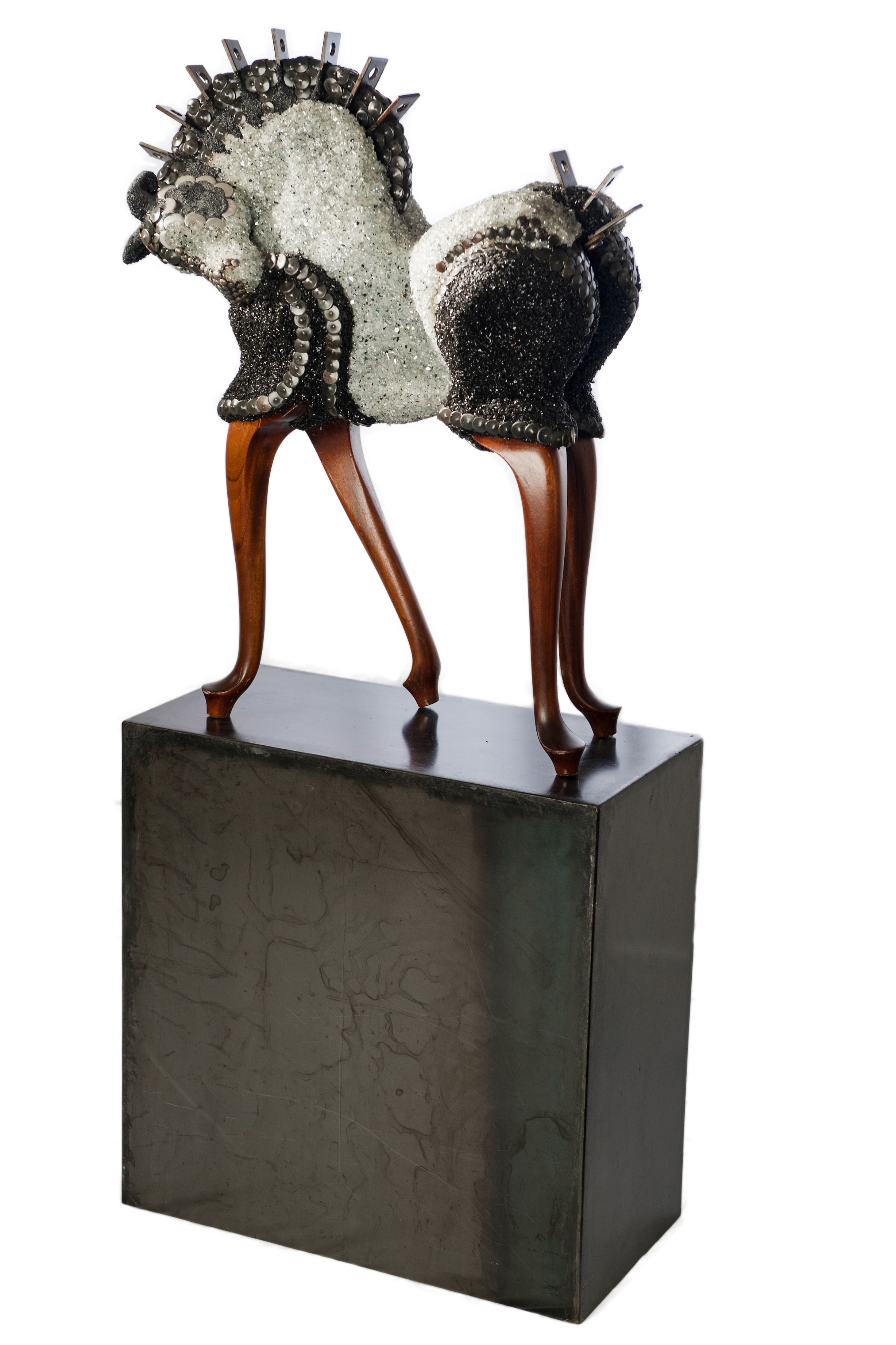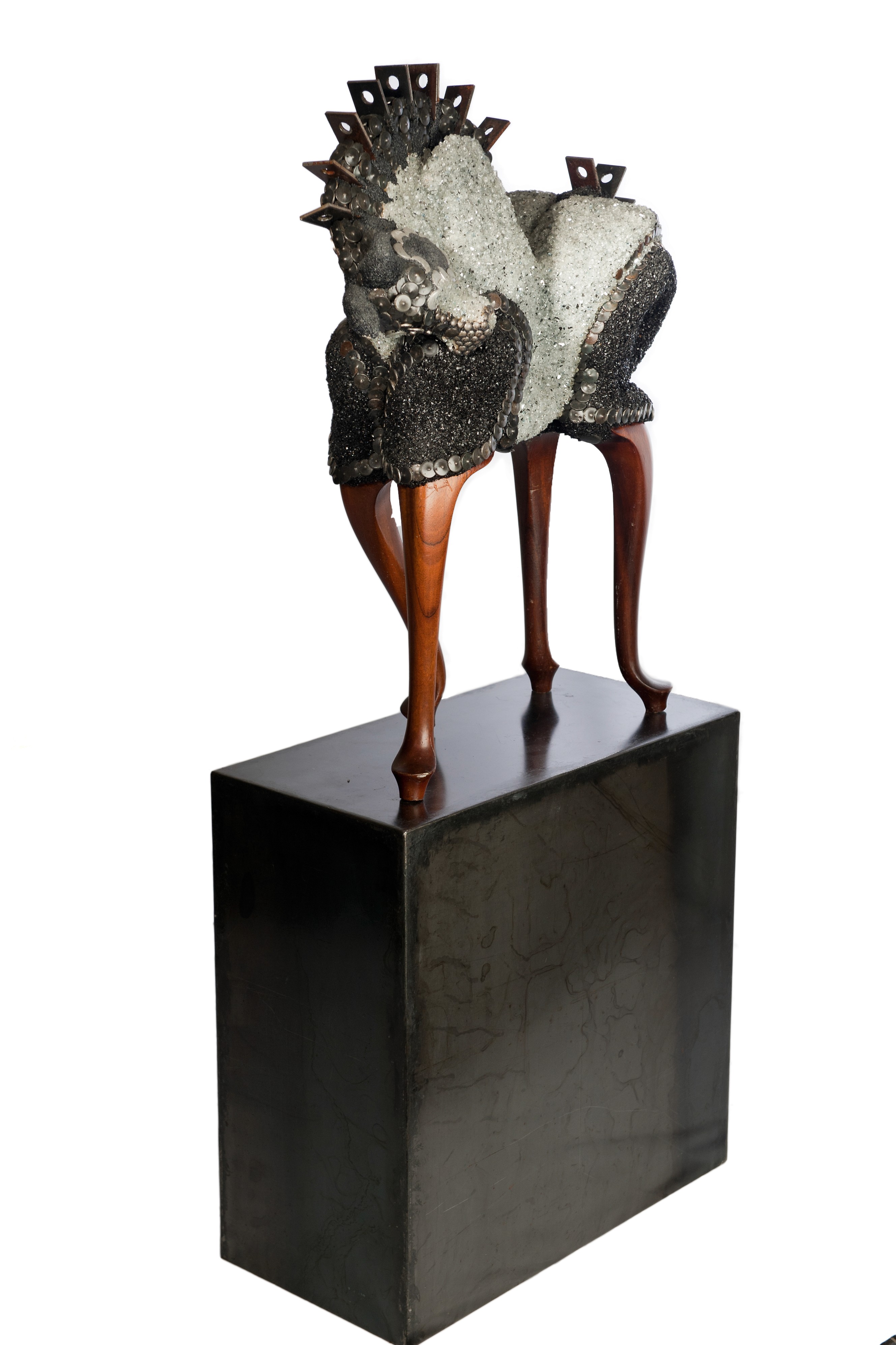 In the astonishing world of Cirque du Soleil anything seems possible. Most amazing is the contradiction between the impossibility of the movements and the apparent ease in which they are executed. Important are abilities like strength, flexibility, balance and focus. Animals have their own specific beauty in both expression and movements. In animals I often see similarities with the things that amaze me in Cirque du Soleil. Through a series of sculptures I have tried to express these abilities and share my admiration for both the animal and Cirque du Soleil. Strength, both inner and physical, are necessary to come to the achievements as seen in Cirque du Soleil. My admiration and astonishment for the beauty established by the combination of these strengths, is what I want to show in this sculpture.